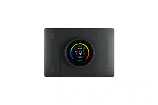 Chronothermostat connecté Tekla T44, intelligent et performant, équipé de la détection d’humidité ambiante. Il permet de réguler précisément la température et l’humidité, offre un contrôle à distance via smartphone et assure un confort optimal tout en optimisant la consommation d’énergie.