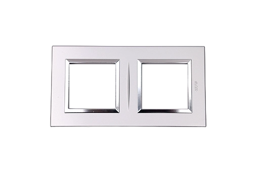 Plaque Bella 43 Carree Argent Opaque Avec Cadre Chrome 2+2 Modules – Plaque murale Carrée en technopolymère Argent opaque, conçue pour le système 43. Format 4 modules, indice de protection IP 20. Produit robuste et esthétique, adapté à une installation électrique fiable et durable.