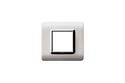 Plaque TECHNOPOLYMÈRE 44 carrée en blanc avec cadre chrome, conçue pour 2 modules. Finition moderne et élégante, durable et facile à installer pour un rendu raffiné et harmonieux.