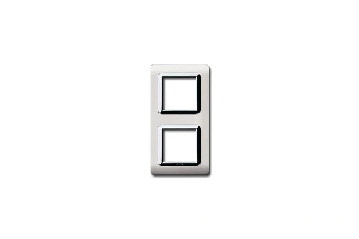 Plaque TECHNOPOLYMÈRE 44 carrée en blanc avec cadre chrome, conçue pour 2+2 modules. Finition moderne et élégante, durable et facile à installer pour un rendu raffiné et harmonieux.