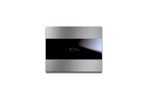 Plaque TOUCH 44 rectangulaire pour prise coulissante, en aluminium naturel brossé. Finition moderne et élégante, durable et facile à installer pour un rendu pratique et contemporain.