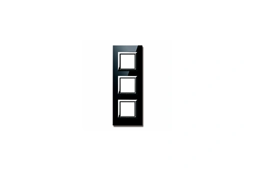 Plaque VERA 44 carrée en verre noir absolu, configuration 2+2+2 modules. Finition moderne et élégante en verre noir brillant, parfaite pour des installations triples raffinées.