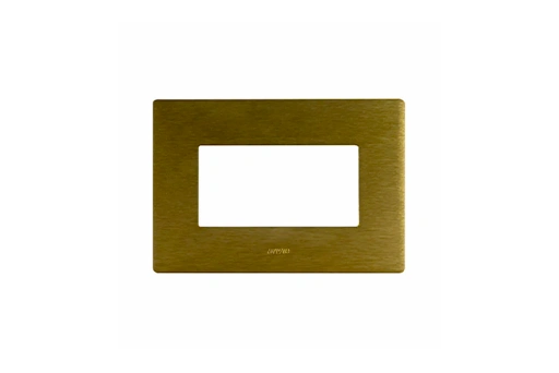 Plaque VERA 44 rectangulaire en aluminium bronze, conçue pour 4 modules. Finition élégante et moderne, durable et facile à installer pour un rendu raffiné et contemporain.