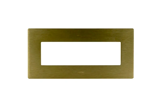 Plaque VERA 44 rectangulaire en aluminium bronze, conçue pour 7 modules. Finition élégante et moderne, durable et facile à installer pour un rendu raffiné et contemporain.