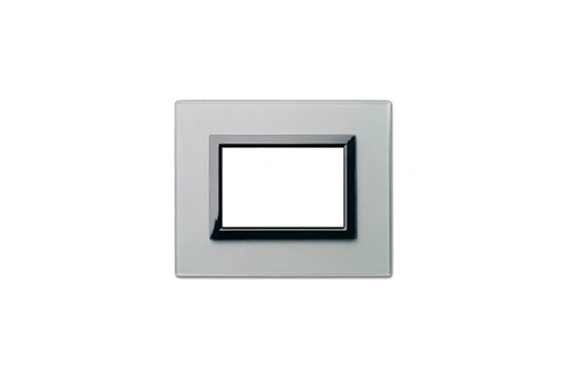 Plaque VERA 44 rectangulaire en verre gris opaque, 3 modules, alliant design moderne et durabilité pour des installations esthétiques et performantes.