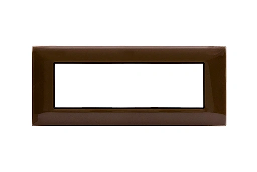 Plaque YOUNG 44 rectangulaire marron, 7 modules, combinant design classique et finition chaleureuse pour des installations esthétiques et durables.