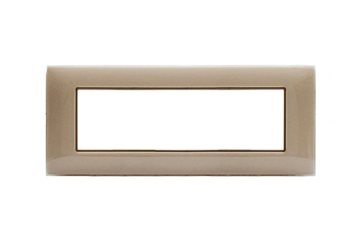 Plaque YOUNG 44 rectangulaire sable, 7 modules, alliant design épuré et finition chaleureuse pour des installations esthétiques et harmonieuses.