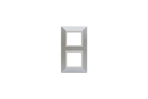 Plaque carrée en finition blanc métallisé, avec deux doubles modules, combinant design moderne et praticité pour des installations élégantes et harmonieuses.