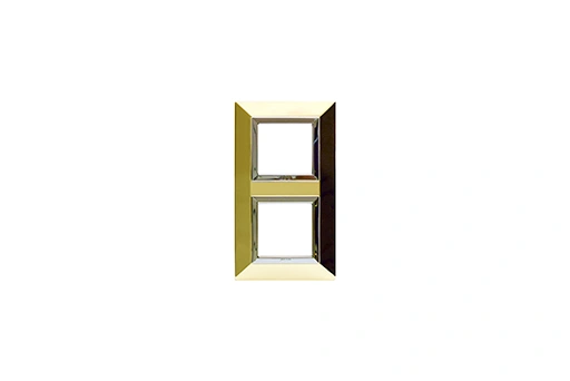 Plaque carrée en finition dorée, avec deux doubles modules, combinant design raffiné et praticité pour des installations élégantes et harmonieuses.