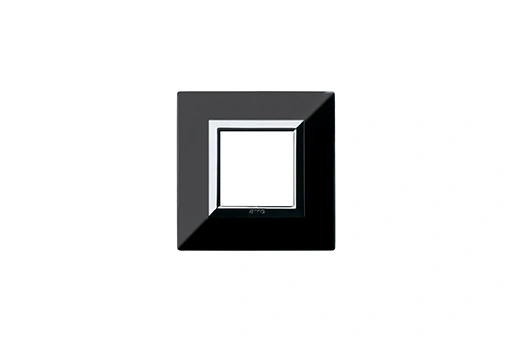 Plaque carrée en finition noir absolu, 2 modules, alliant design moderne et robustesse pour des installations élégantes et harmonieuses.
